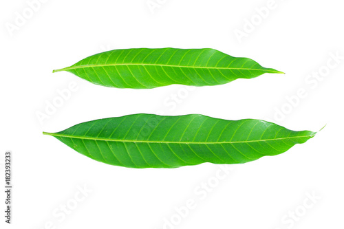 © Thanrada H., Obraz premium Fresh green mango leaf on white background