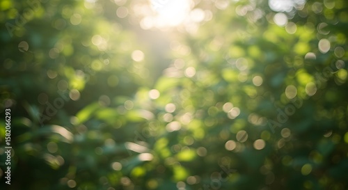 © Wanidewe, Obraz premium Fresh Green Maple Leaves with Sunlight and Bokeh Background