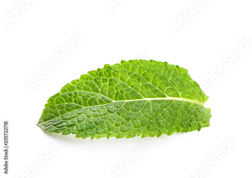 Obraz premium Fresh green mint leaf on white background