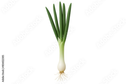 © PNG Kingdom , Obraz premium Fresh green onion scallion with roots isolated, raw spring onion for healthy cooking and culinary ingredients, transparent background