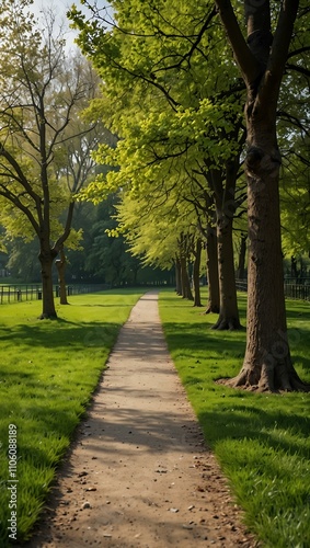 Fototapeta premium Fresh green park background with spring vibes.