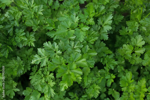 © New Africa, Fototapeta premium Fresh green parsley as background, top view