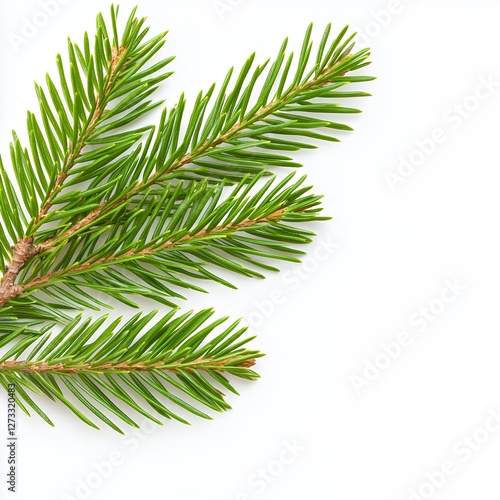 © siriwan, Fototapeta premium Fresh Green Pine Tree Branches Displaying Natural Beauty on a White Background