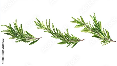 Fototapeta premium Fresh Green Rosemary Herb Illustration on White Background