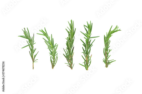 © pisut, Fototapeta premium Fresh green rosemary isolated on white background topview