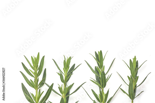 Fototapeta premium Fresh green rosemary isolated on white, top view. Aromatic herb.