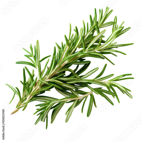 Fototapeta premium Fresh green rosemary leaves ready for culinary use or aromatic infusion on a white background, Fresh green aroma rosemary leaves, white background
