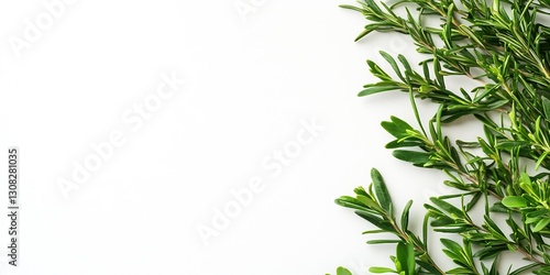 © Generative AI, Fototapeta premium Fresh Green Rosemary Sprigs on a Minimalistic White Background : Generative AI