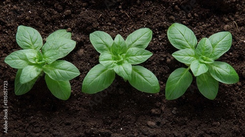 Naklejka premium Fresh Green Seedlings Growing in Dark Soil Under Natural Light