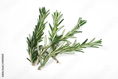 Fototapeta premium Fresh green sprigs of rosemary isolated on a white background