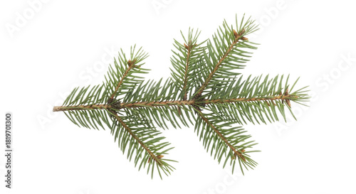 © scrdy, Naklejka premium Fresh green spruce branch with needles and buds on a transparent background PNG image PNG file for holiday designs