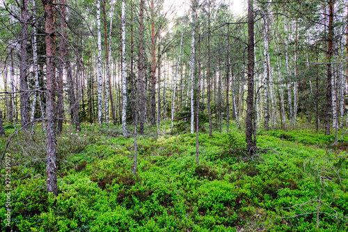 © Martins Vanags, Obraz premium fresh green summer spring foliage textured background with blur
