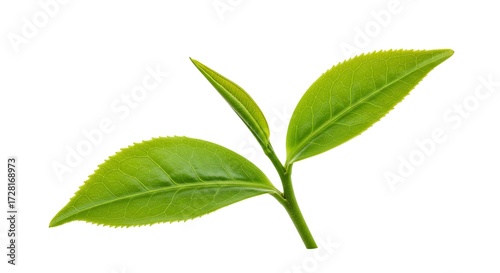 Fototapeta premium Fresh Green Tea Leaves Isolated on White Background, symbolizing health and wellness