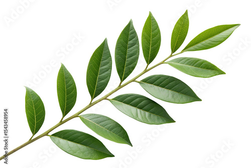 Fototapeta premium Fresh green tree branch with leaves isolated on PNG background close up, leaf, leaves, branch, tree, green, plant, nature, foliage, isolated, black, closeup, botanical, botany, detail, flora, natural