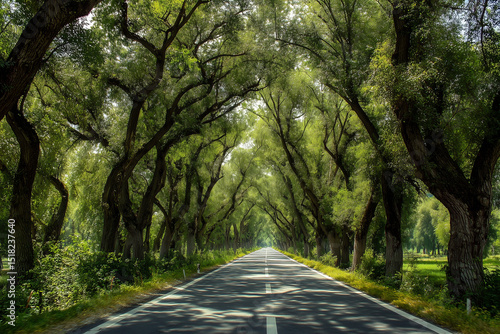 © Alexander, Naklejka premium Fresh Green Trees Along Bright Path
