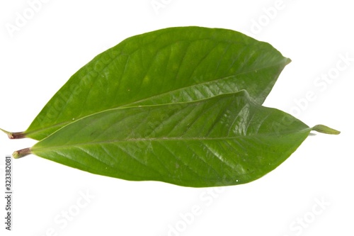 Obraz premium Fresh green water guava leaves isolated on a white background