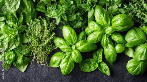 Fototapeta premium Fresh Herbs on Dark Background for Culinary Use