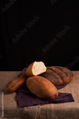 Obraz premium Fresh homemade bread. Crisp. Bread at leaven. Unleavened bread. dietary bread