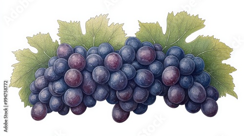 © BOJOShop, Fototapeta premium Fresh Juicy Grapes with Green Leaves Realistic Illustration