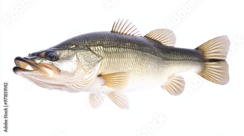 © Narongsag, Fototapeta premium Fresh Largemouth Bass Fish Isolated on White Background