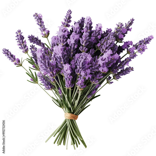 © Minimal Blue, Fototapeta premium Fresh Lavender Bouquet Tied With String On White Background