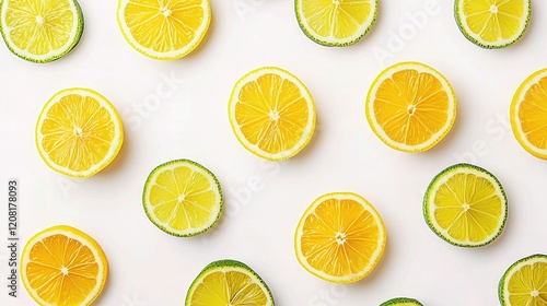 © CLOVER BACKGROUND, Fototapeta premium Fresh Lemon and Lime Slices Isolated on White Background