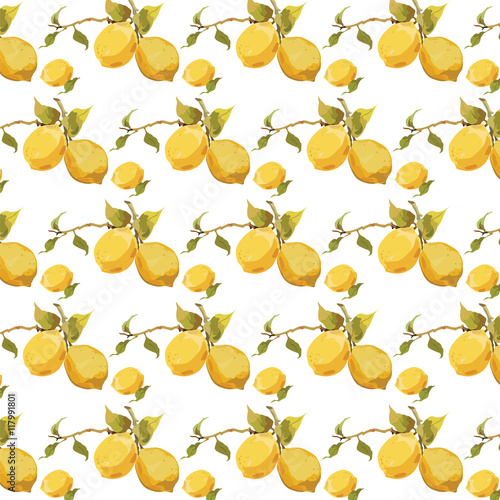 © castecodesign, Obraz premium Fresh lemons pattern Vector