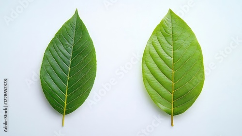 © Johnathan, Obraz premium Fresh Mango Leaves Displayed on Solid White Background Generative AI