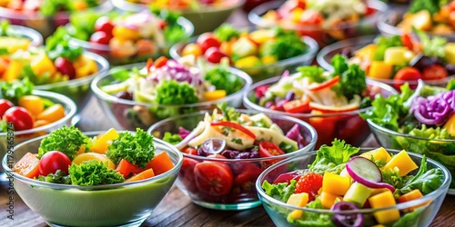 © Oliver, Fototapeta premium Fresh Mini Salads Catering Party Appetizers Close Up Selective Focus
