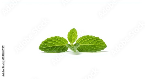 Fototapeta premium Fresh mint leaf photographed on an unblemished white backdrop with complete...