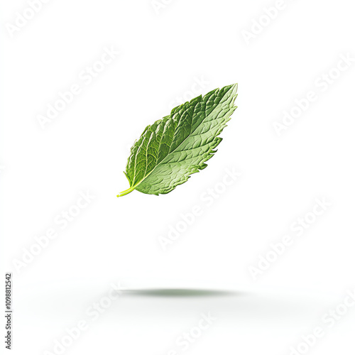 © Alex, Obraz premium Fresh mint leaf, white isolated background.