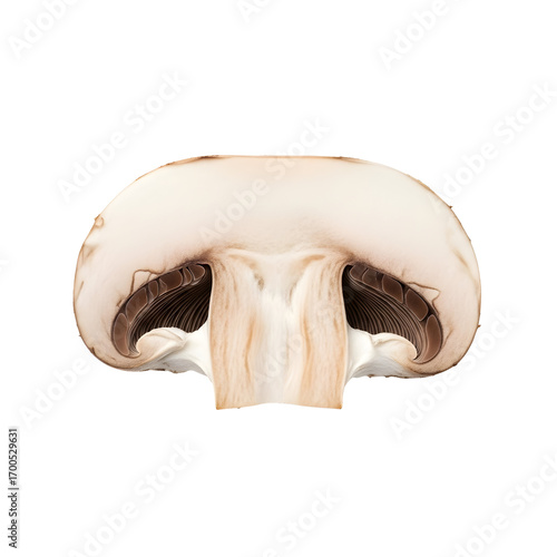 © Mr. Hawis, Fototapeta premium Fresh Mushroom Cross-Section Isolated on Transparent Background