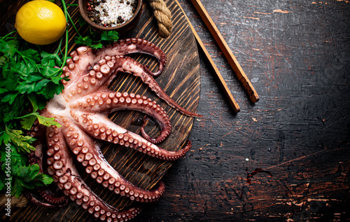 © Artem Shadrin, Fototapeta premium Fresh octopus on a wooden tray.