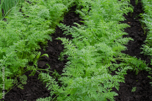 © LunaLu, Fototapeta premium Fresh Organic Carrot Growing in Garden Carrot on Garden Bed