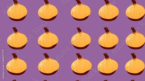 Fototapeta premium Fresh Organic Onion Vegetable Cartoon Horizontal Seamless Background. Healthy Vegetarian Diet. Ai Generated Seamless Background with Delicious Juicy Onion Vegetable Arranged in lines.