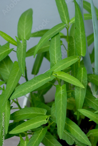 Obraz premium Fresh organic Water Spinach (Ipomoea aquatica) growing in a pot