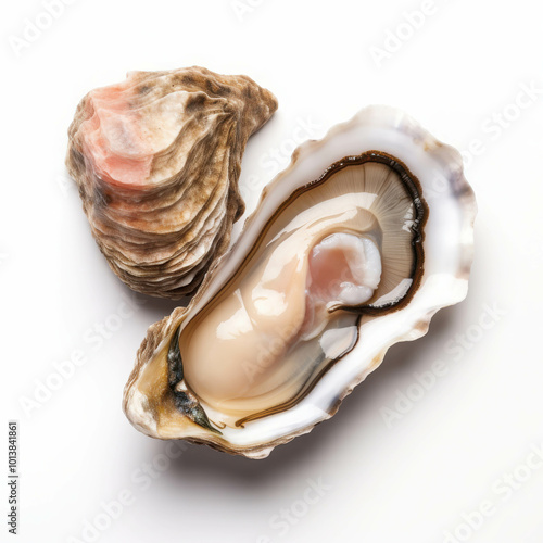 © Gun, Naklejka premium Fresh Oyster Close-Up on White Background