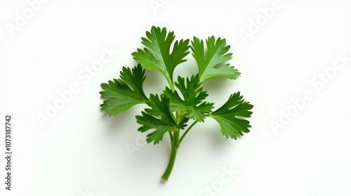 Fototapeta premium Fresh Parsley sprig on white background, showcasing vibrant green and aromatic leaves