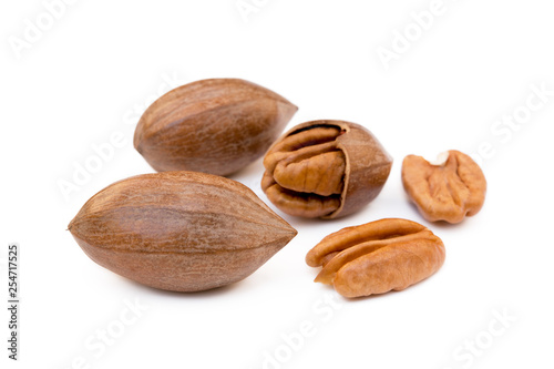Obraz premium Fresh pecan nuts isolated on a white background