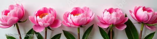 © เดือน สุขทั่วญาติ, Fototapeta premium Fresh pink peony arrangement with greenery and stems, blooming, bouquet
