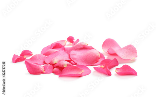 Fototapeta premium Fresh pink rose petals on white background