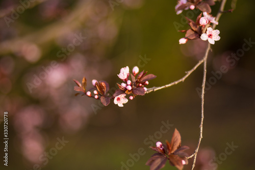 © Svetlana, Fototapeta premium Fresh, pink, soft spring cherry tree blossoms on pink bokeh background.