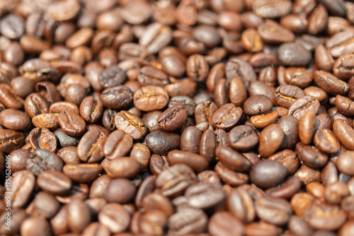 Fototapeta premium Fresh premium roasted brown Arabica coffee beans background