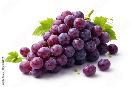 Fototapeta premium Fresh purple grapes displayed on a bright white backdrop