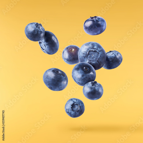 Fototapeta premium Fresh raw blueberries falling in the air.