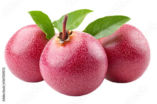 © Muhammad, Fototapeta premium Fresh red apple with a green leaf on a white background