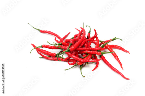 Fototapeta premium Fresh red chilies on a white background, good for article or recipe