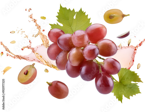 Obraz premium Fresh red grapes with droplets, showcasing their juicy texture and vibrant...