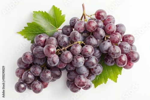 © Dhoku Studio, Fototapeta premium Fresh Red Grapes with Green Leaf on White Background.