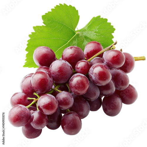© Ifti Digital, Fototapeta premium Fresh red grapes with green leaves isolated on a white background for culinary and health purposes, Grape isolated on white background